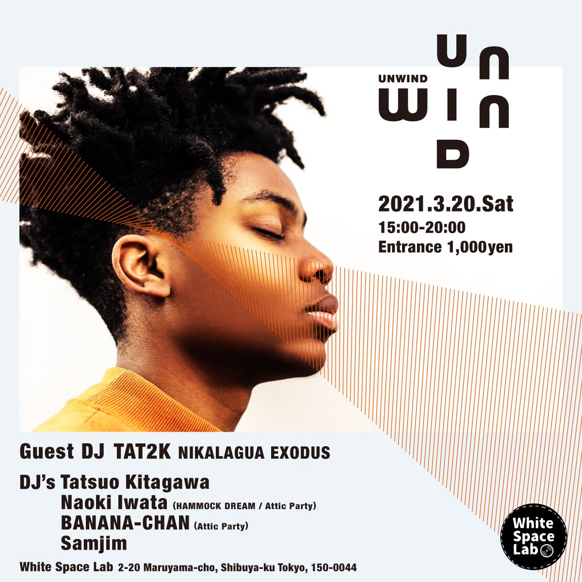 第2回目は、ゲストにTAT2K (NIKALAGUA EXODUS) をお招きして、ジャンルレスでフロアライクなプレイスタイルがいかに ”UNWIND” として融合してマッチするのか楽しみにしています。