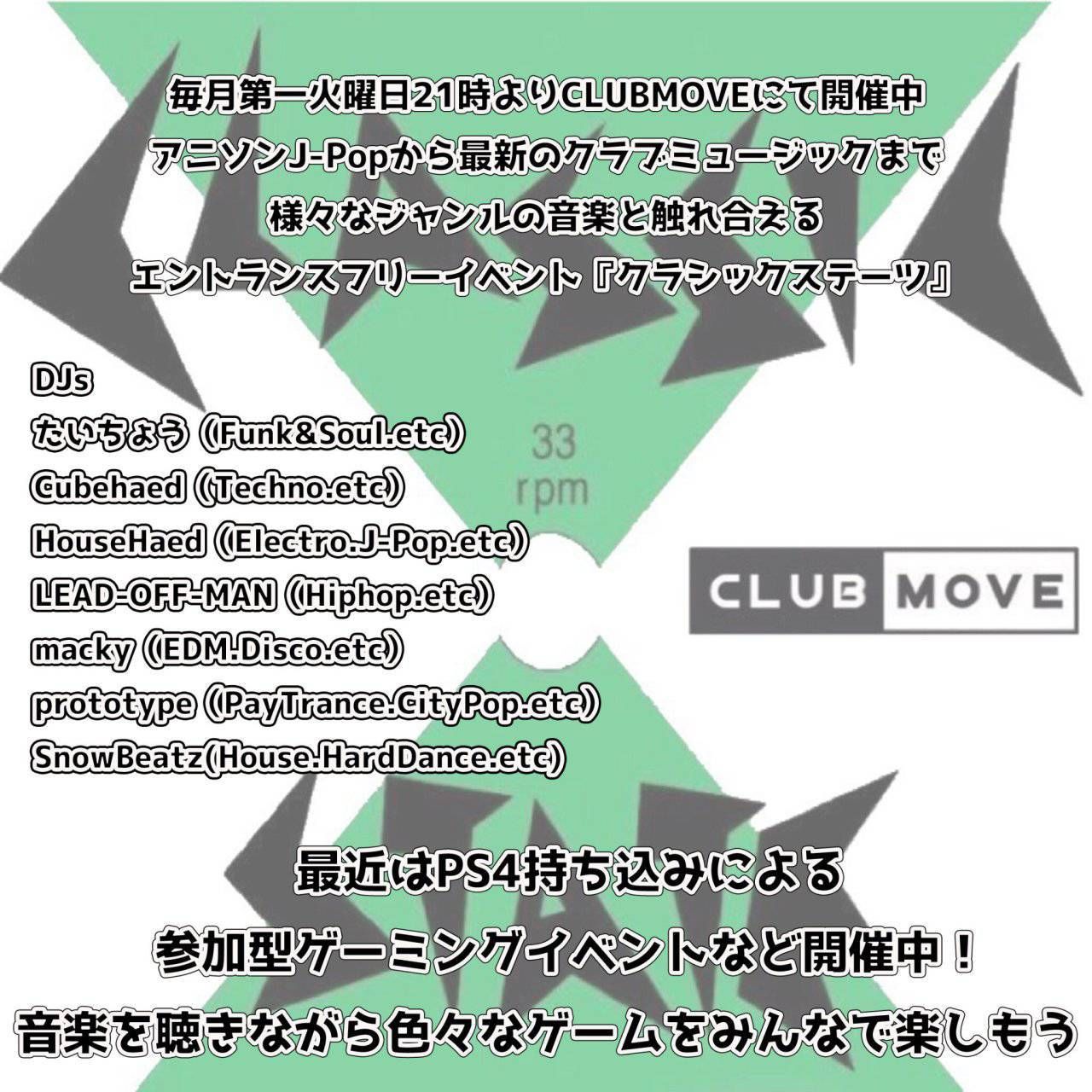 - DJ : TAICHO / HOUSE HEAD / DJ macky / Snow Beatz / Cubehead / Lead-off man / prototype / NANATA