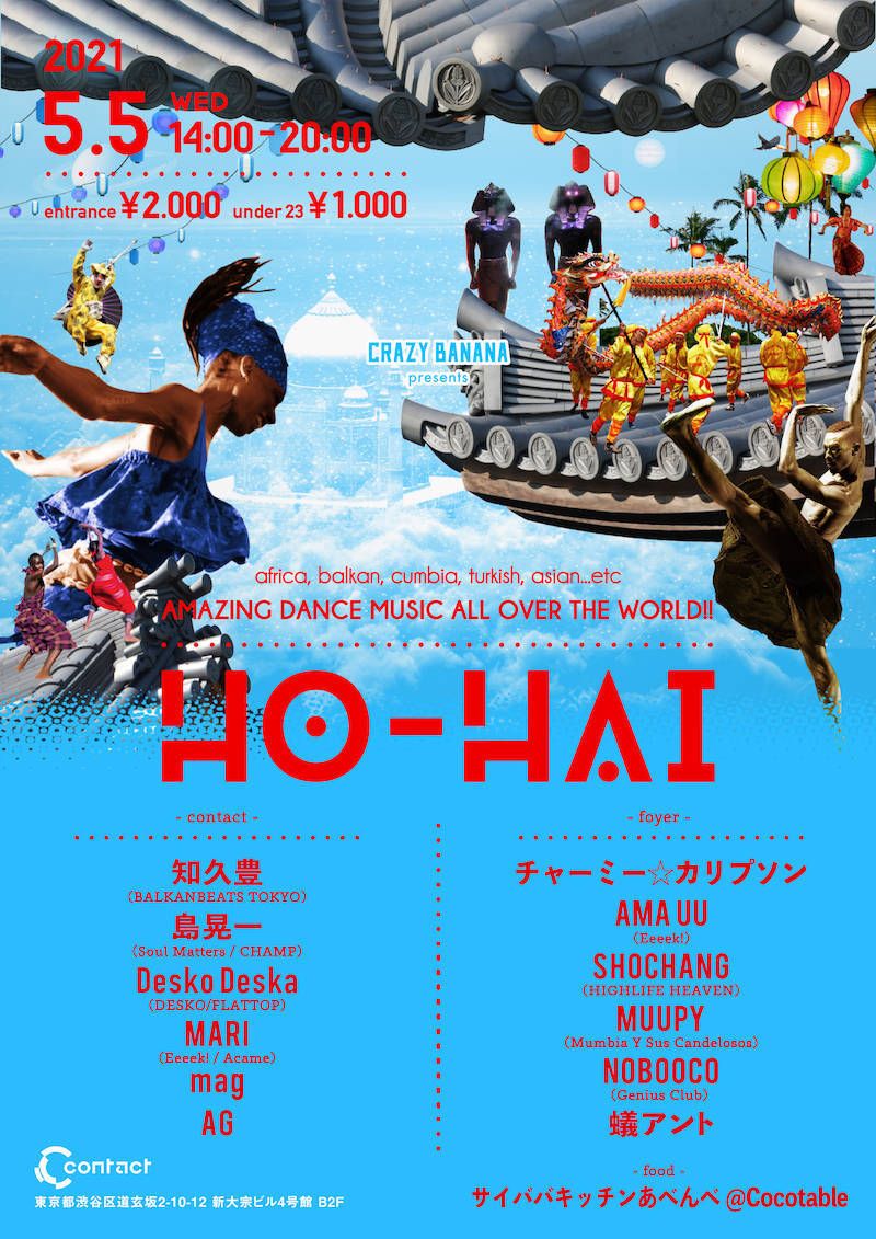 ワールドミュージックで陶酔する多幸的夜祭HO-HAI、端午の節のラインナップが発表された。2フロアで展開される“熱さ”と“深さ”の濃厚な二極化を促進させる、音楽国籍を異にしたエキスパートが集結した。