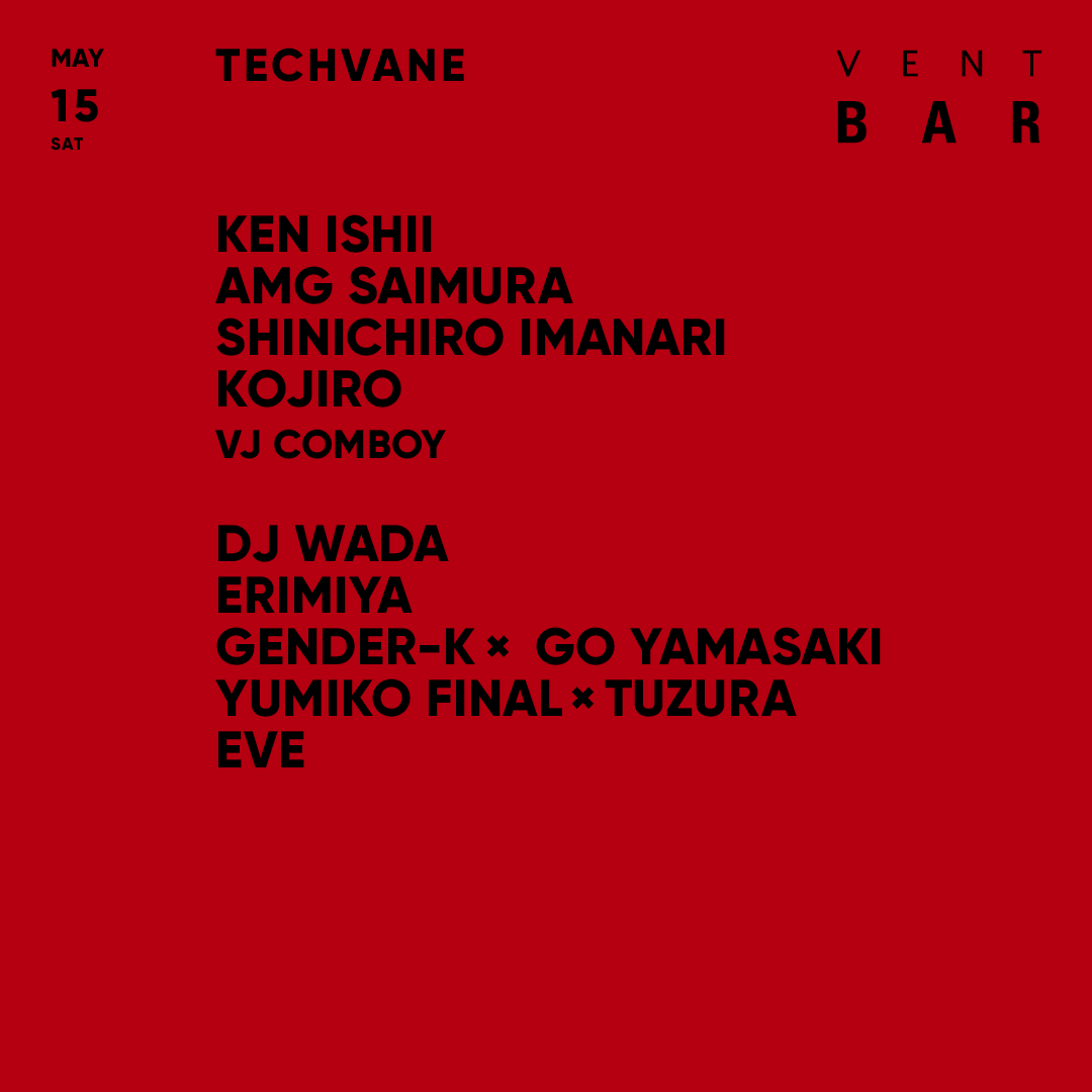 【 日本が世界に誇るテクノ ゴッド・KEN ISHII、Co-FusionのDJ WADA、AMG SAIMURAが5月15日のTECHVANEに登場!! 】