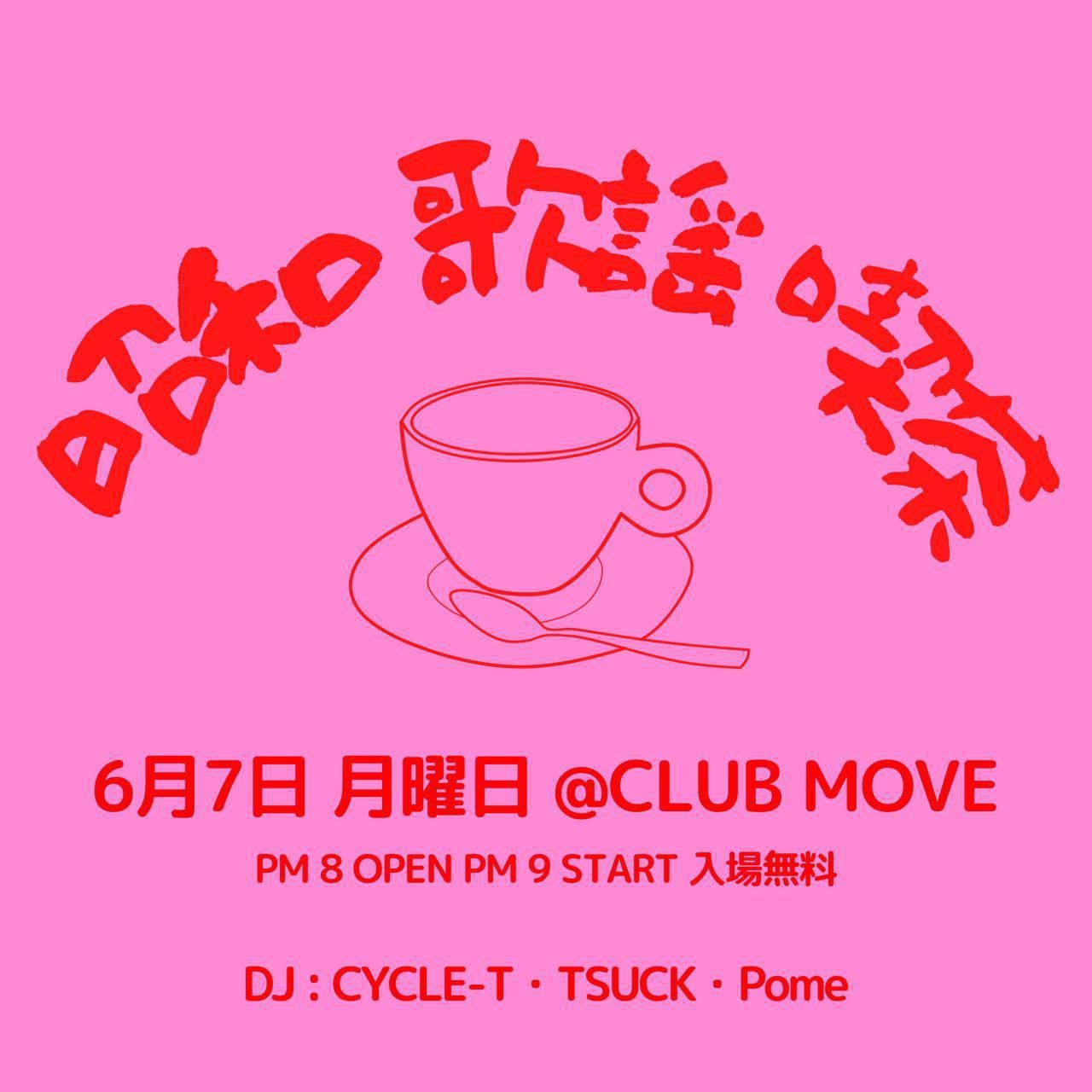 偶数月の第一月曜日に滋賀CLUB MOVEにて開催中。この日の音楽は昭和のスナックにタイムスリップ。そんな昭和歌謡にドップリと浸って頂けるクラブ・イベントが昭和歌謡喫茶です。誰もが知ってるお馴染みの曲からレアでマニアックな曲までと幅広い選曲でDJがプレイ。リクエストや音源持参も大歓迎。