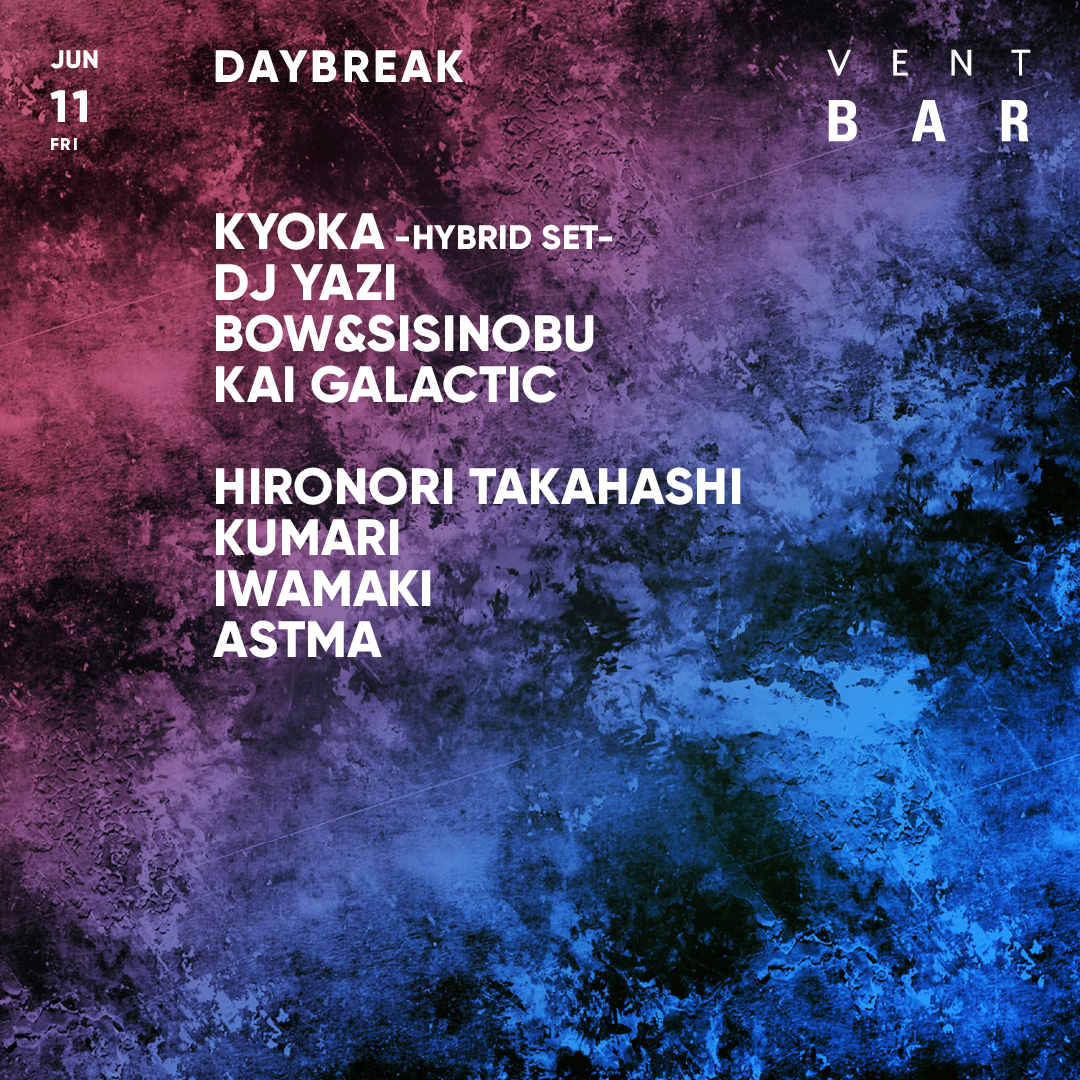 進化を続けるテクノパーティーDAYBREAKに集う豪華なラインナップのグルーヴを、VENTの上質なサウンドで体感してほしい。
