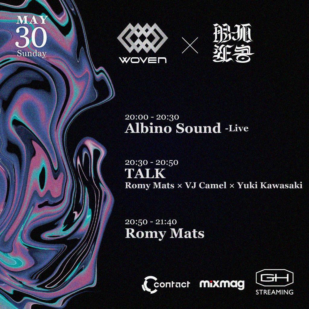 Mixmag Japanがサポートする「WOVEN」と、人気パーティ「解体新書」が配信プログラムGH STREAMINGでコラボレーション。放送日は5月30日(日)の20時~に決定した。解体新書を主宰するDJ・Romy MatsとVJ Camelのパフォーマンスに加え、Albino SoundがLive Setで登場する。また、当日はRomy MatsとVJ Camel、Mixmag Japan編集部のYuki Kawasakiによるトークセッションも実施。国内屈指の人気パーティに対し、音楽パフォーマンス以外の角度からも迫る。