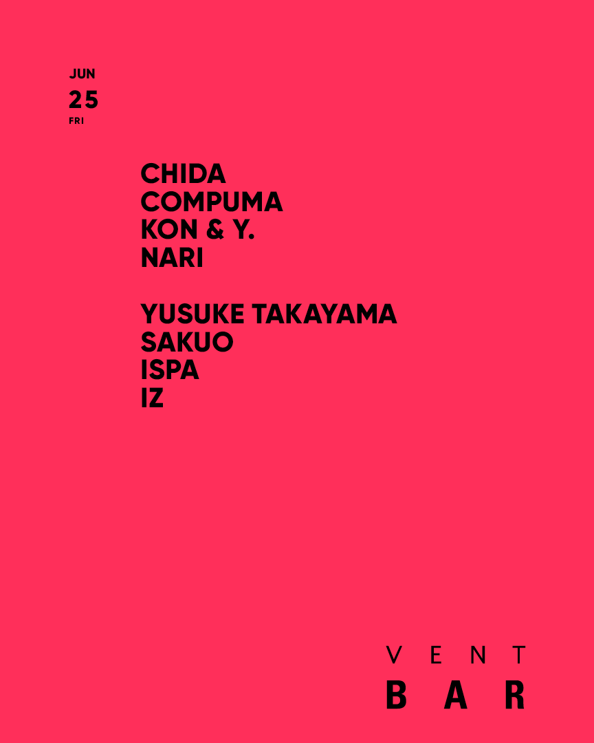 【 CHIDAとCOMPUMAがダブルヘッドライナーとして6月25日のVENT BAR に登場! 】