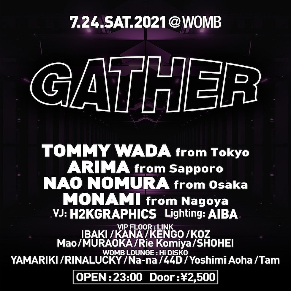 来たる7月24日(土) GATHER に集結する DJ は、東京からは SESSION を主催する TOMMY WADA、札幌からはクラブ ACID ROOM のメインパーティである Chord のレジデントを務める ARIMA、名古屋からは老舗クラブ MAGO を中心に活躍する MONAMI、大阪からは CLUB JOULE にて開催されているレギュラーパーティSPECTACULAR のレジデントとして活躍する NAO NOMURA の4名。