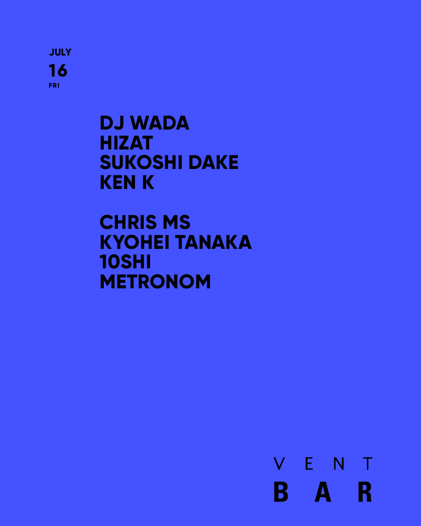 【 Co-Fusion/Atom名義で傑作を世に送り出してきたDJ WADAが7/16(金)のVENT BARへ登場! 】