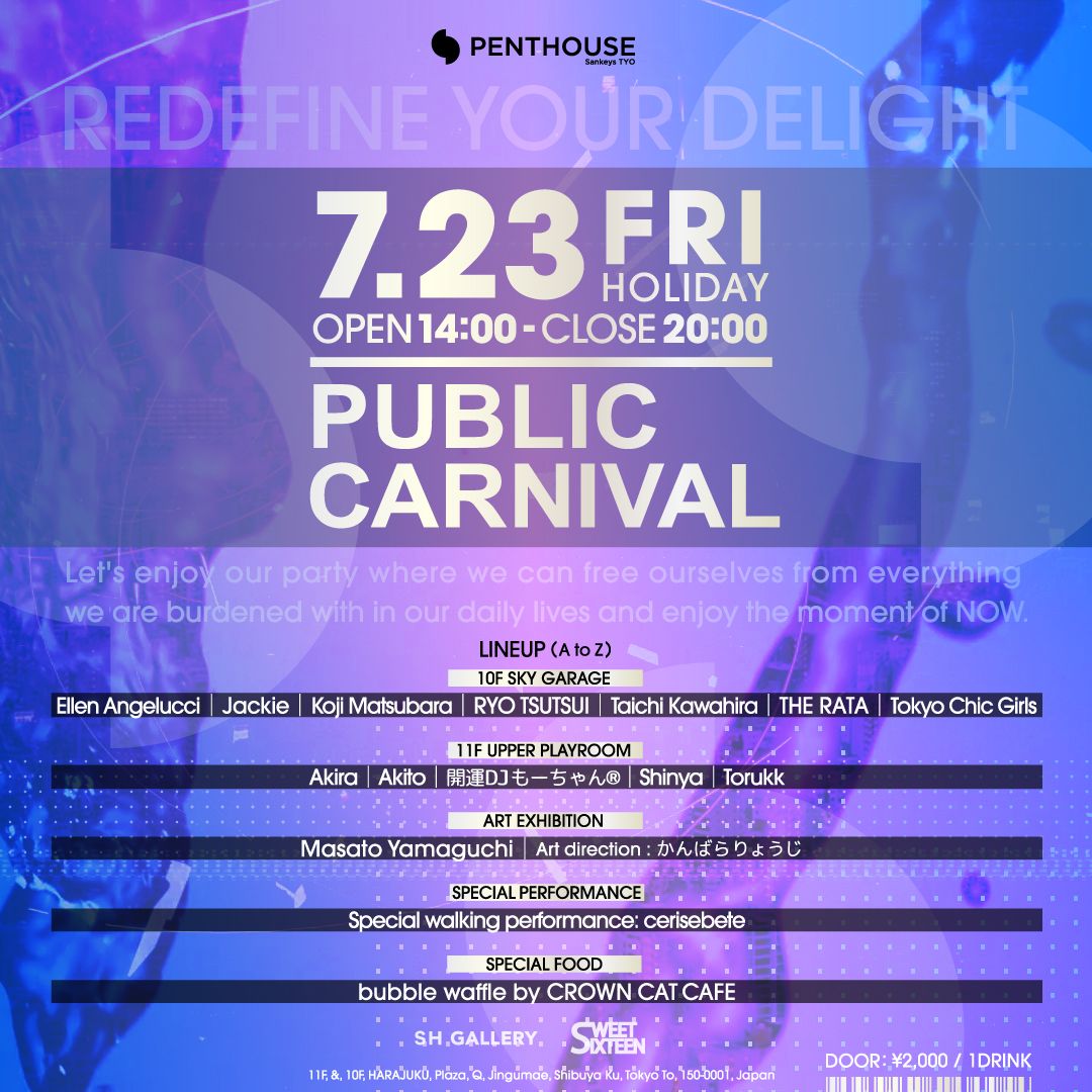 4月に泣く泣く延期、幻となったニューパーティ”PUBLIC CARNIVAL” が7/23(金・祝日)にデイタイムイベントとして開催決定!