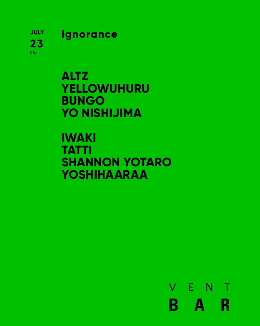 イギリスの“BEAR FUNK”、イタリアの“Mad on the moon”や“bosconi”、アメリカの“DFA”をはじめとする各国のレーベルからアルバムやEPを多数リリース、現在は自身のレーベル“ALTZMUSICA”から数多くの楽曲をリリースするALTZ。そのリリースはバンドプロデュースや、ラッパーRITTOとタッグを組んだ加山雄三『夕陽は赤く』プロジ ェクト、新鋭映像作家・シシヤマザキらとのCMコラボなど実に多岐に渡る。それら幅広い活動と同様にDJもジャズ/ハウス/ブレイクス/テクノ/エレクトロ/アシッドなど非常に幅広い要素をアンダーグラウンドに研ぎ澄まされた独特の感性でブレンド、多くの驚きをサウンドシステム越しにダンスフロアへと与えて来た。コロナ禍中にVENTがキュレーターとして参加したベルリン発のクラブストリーミング“United We Stream”でもそのプレイの一端を感じる事が出来る、日本が誇る奇才が久々にVENT BARへ登場する。