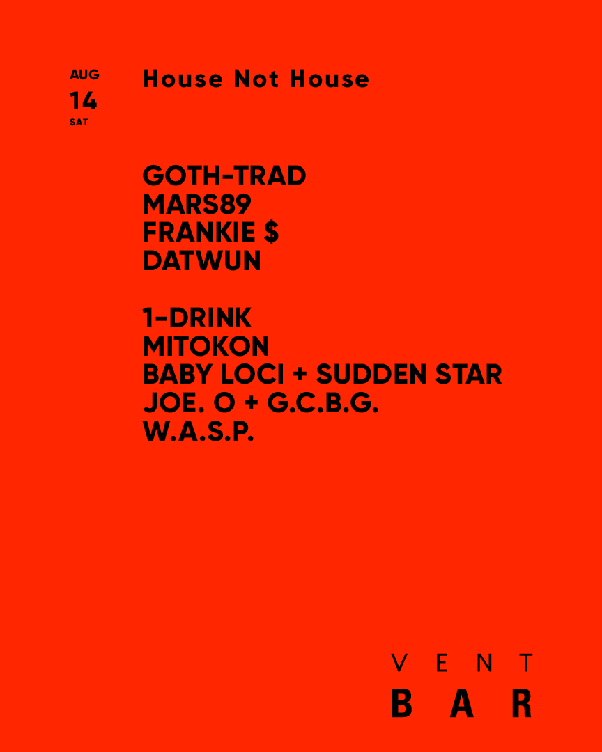 【 日本が世界に誇るオリジネーターGOTH-TRADと、トム・ヨークやUNDERCOVERも注目するMARS89が8月14日のHouse Not Houseに登場! 】