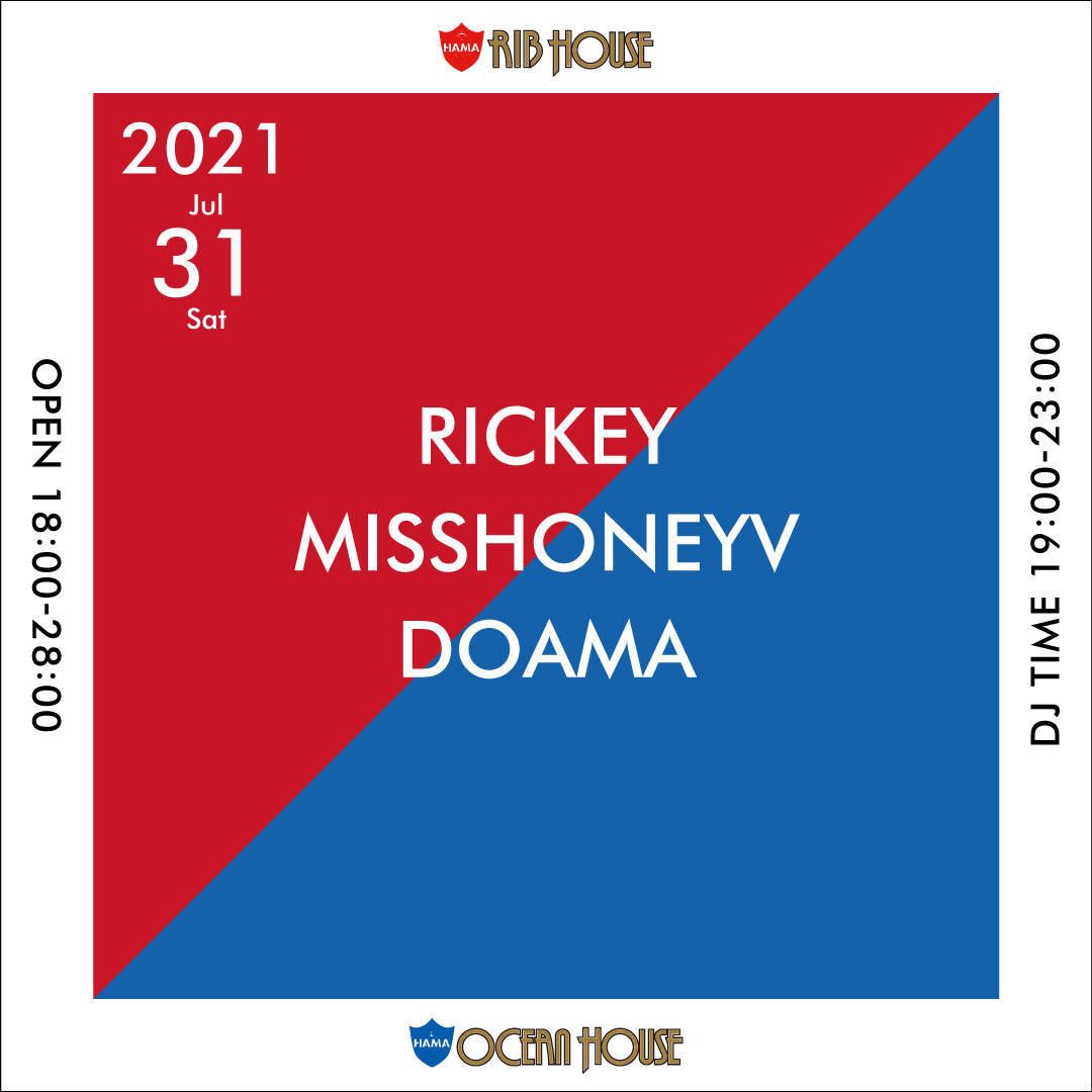 2021.07 31 JUL Rib & Ocean House -Sat- ALLMIX 0 Shares Facebook Twitter google Line DATE: 2021-07-31 SAT OPEN: 19:00 VENUE: PRICE: Entrance Free LINE UP: OPEN 18:00~4:00 DJ TIME 19:00~23:00 DJ: RICKEY MISSHONEYV DOAMA