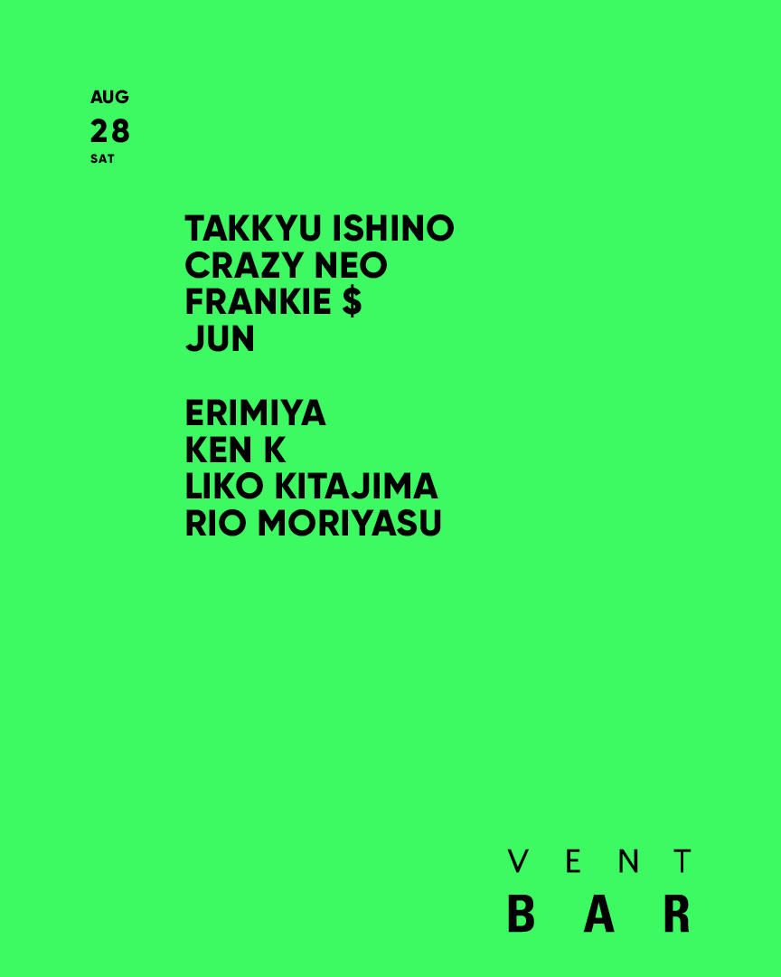 ※ VENTでは、20歳未満の方や、写真付身分証明書をお持ちでない方のご入場はお断りさせて頂いております。ご来場の際は、必ず写真付身分証明書をお持ち下さいます様、宜しくお願い致します。尚、サンダル類でのご入場はお断りさせていただきます。予めご了承下さい。