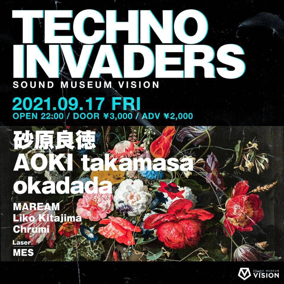 9月のTECHNO INVADERSは電気グルーヴの元メンバーであり、マスタリングエンジニアとしてサカナクション、D.A.N.、yahyelなどの作品も手掛ける砂原良徳や、電子音楽の世界最高峰であるドイツのレーベル〈Raster-Noton〉に所属し、坂本龍一やサカナクションのリミックスも手掛けているAOKI takamasaが登場。日本全国のクラブやフェスなどに引っ張りだこの人気DJ、okadadaも出演。そしてレジデントを務めるMAREAM、Liko Kitajima、Chrumiら女性DJ陣が華を添える。