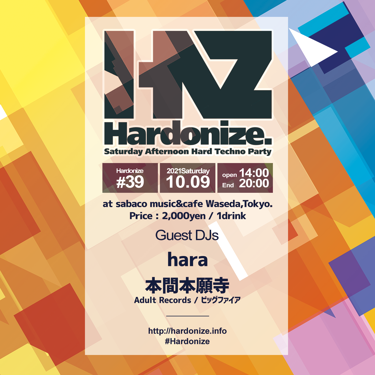 40回目前と迫った39回目、今回のゲストは秋葉原MOGRAのマネージャーを務めベースミュージックを中心に日本各地で多方面に活躍するharaが早稲田茶箱初プレイ!そして、Hardonizeには3回目の出演となる我らがジャパニーズハードグルーヴの雄、本間本願寺のお二人をお呼びするハードな6時間。今回も二度とないであろう組み合わせのレジデントとゲストによる一期一会の共演をお見逃しなく!!