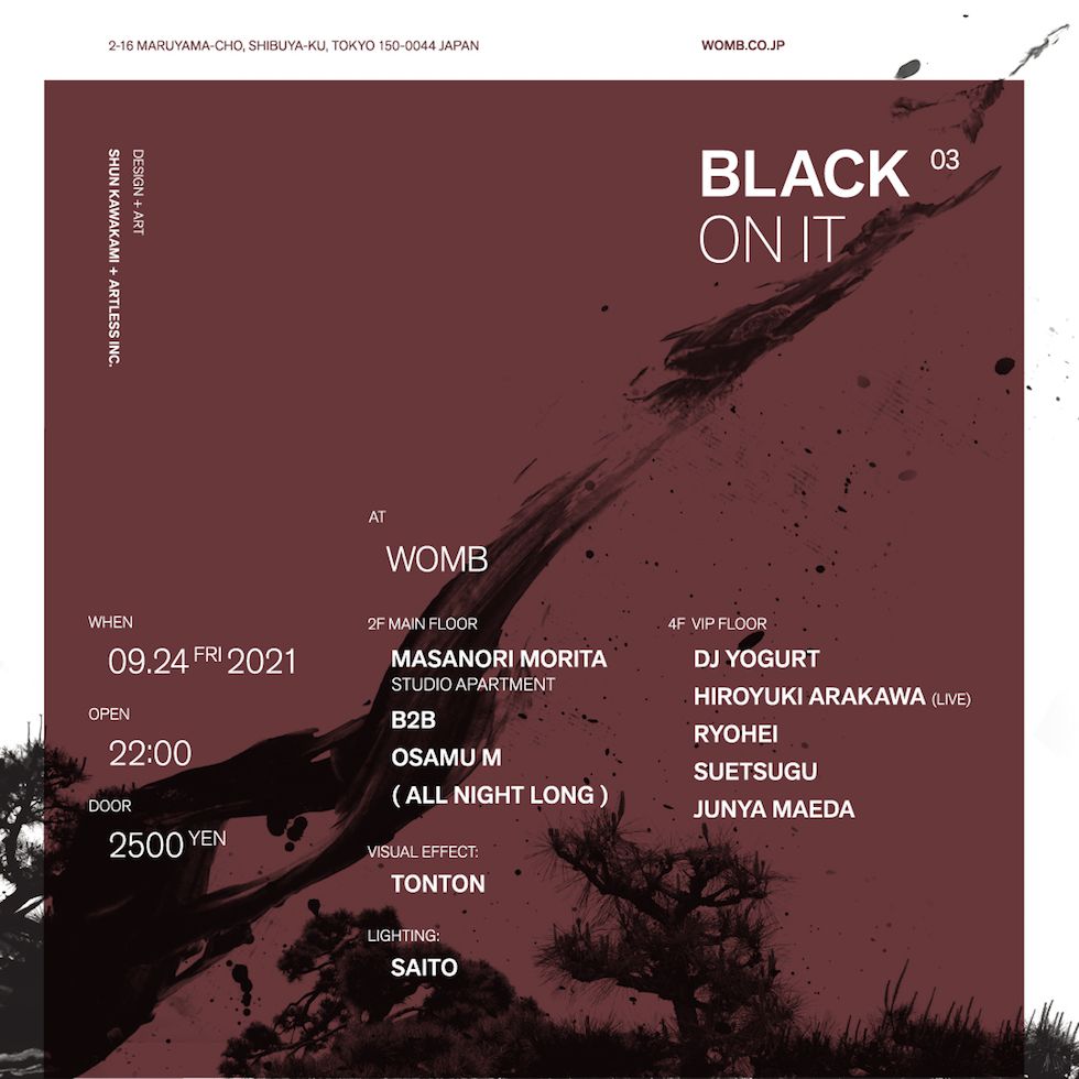 DJ 陣は、先日リリースしたニューシングル ”Sun Ra Was Right feat”. Monique Binghamが、"Traxsource"のアフロハウス部門で1位を獲得し、2021年も意欲的な活動を見せている MASANORI MORITA (STUDIO APARTMENT) 、そして ULTRA JAPAN "RESISTANCE" に4年連続出演し、日本のハウス/テクノシーンを担う存在である OSAMU M の2人によるオールナイトを決行。思う存分 BLACK ON IT を感じてほしい。