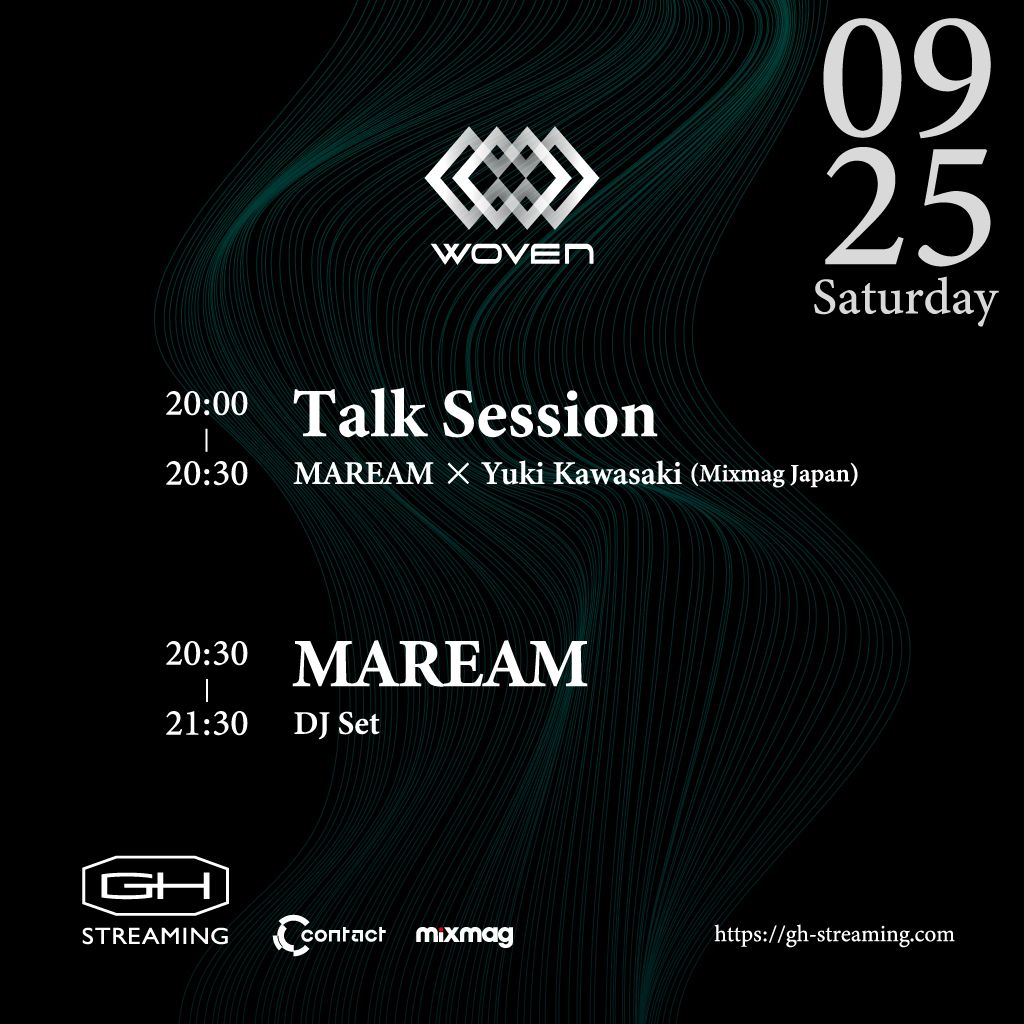 9月のWOVENには、VISIONの人気パーティTECHNO INVADERSのレジデントDJのひとりにして、数々のレーベルから楽曲をリリースするMAREAMが登場! 今年7月にはウクライナのレーベル〈Oxytech Planet〉からEP「Educated」をリリースし、UKのニューヒーローEwan McVicarのEP「Punch the Wall」にリミックスを提供した。トークセッションではリリース元のレーベル〈Unknown To The Unknown〉との関係性も語られており、必見の内容となっている。DJセクションではハードテクノを基軸にしたセットを展開。