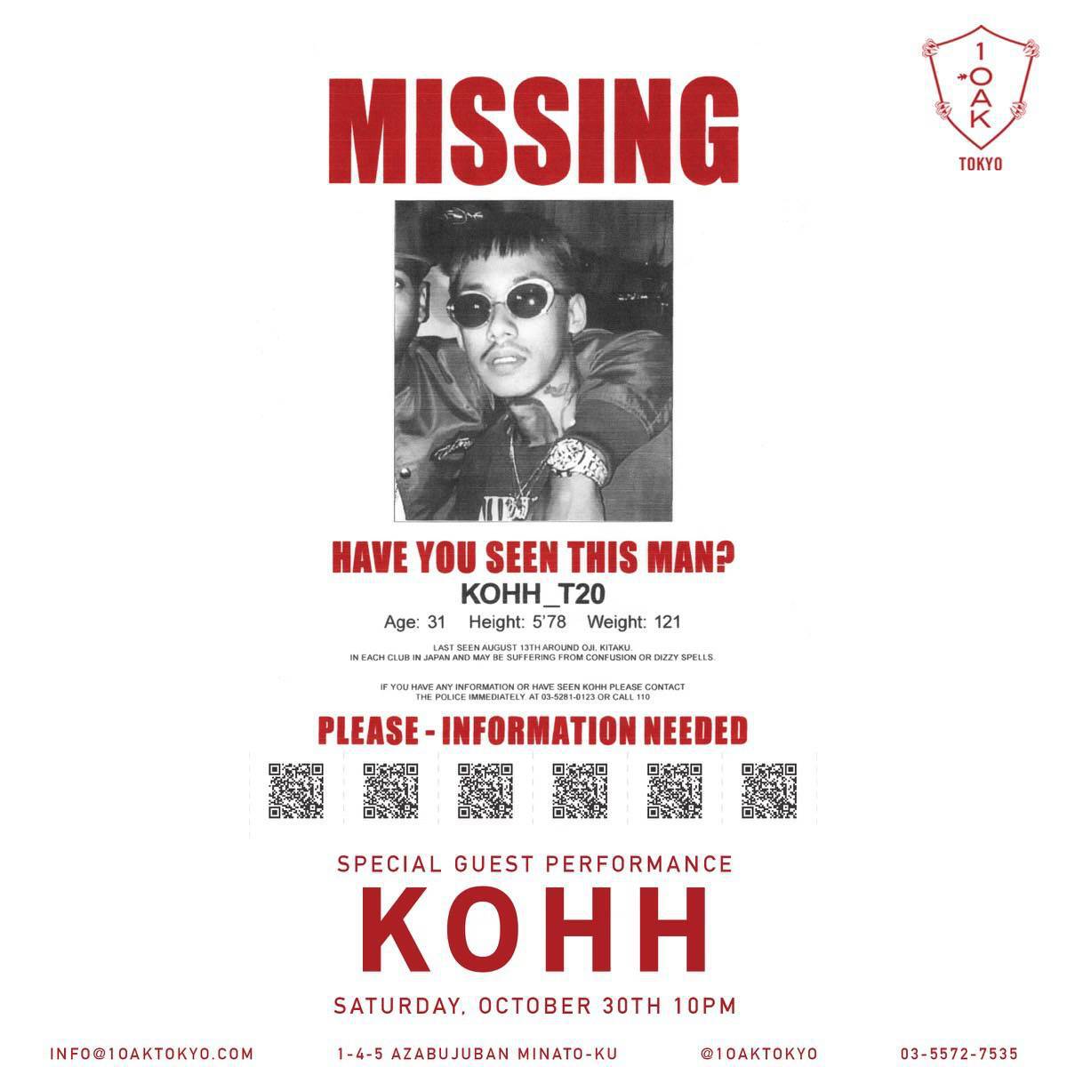- ¥10,000 (2 Drink 付き、1am まで優先入場チケットでもあります。又、1OAK先着50名様には1OAK帽子プレゼント)