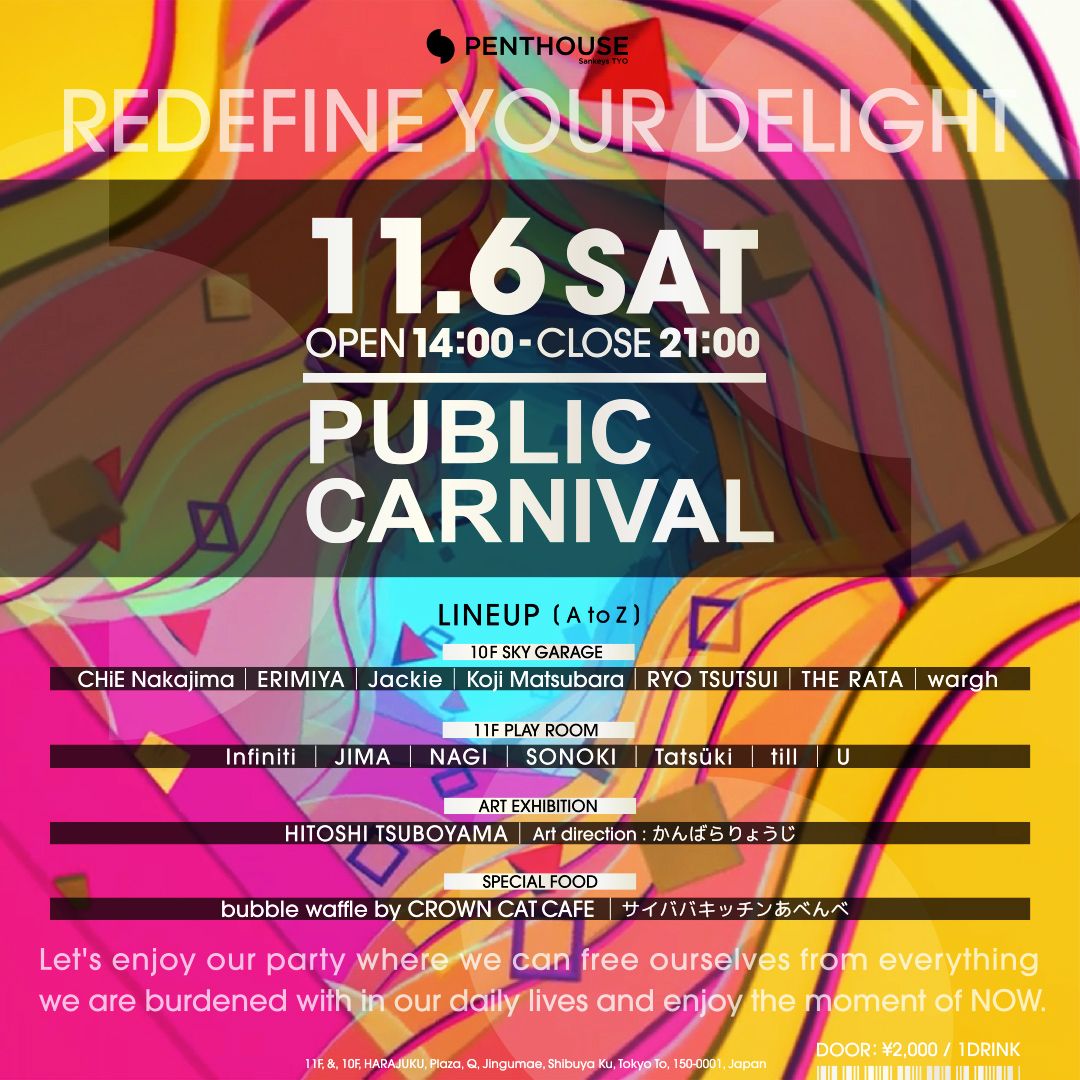 今年7月にオリンピックの開幕と同時に初開催され、ドラマチックな幕開けを飾った”PUBLIC CARNIVAL”が11/6、第2回目の開催を迎えます。