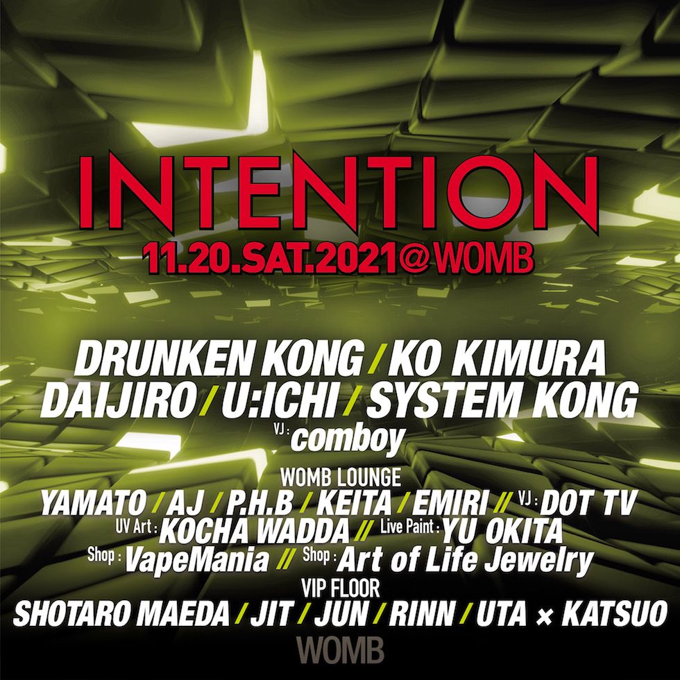 メインフロアーは、トップレーベルからのリリースを重ねる DRUNKEN KONG を筆頭に、テクノレジェンドの一人でもある KO KIMURA、常にフロアーを沸かせる大人気 DJ の DAIJIRO、現在アーティストとして着々と名を上げている U:ICHI、INTENTION レギュラーの CHIE NAKAJIMA と JUNPEI のユニット、SYSTEM KONG が登場!!