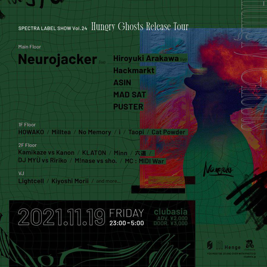 本企画は、SPECTRAのアーティスト「Neurojacker」によるデビューアルバム「Hungry Ghost」のリリースパーティーとして、Nurojackerがライブで出演する。