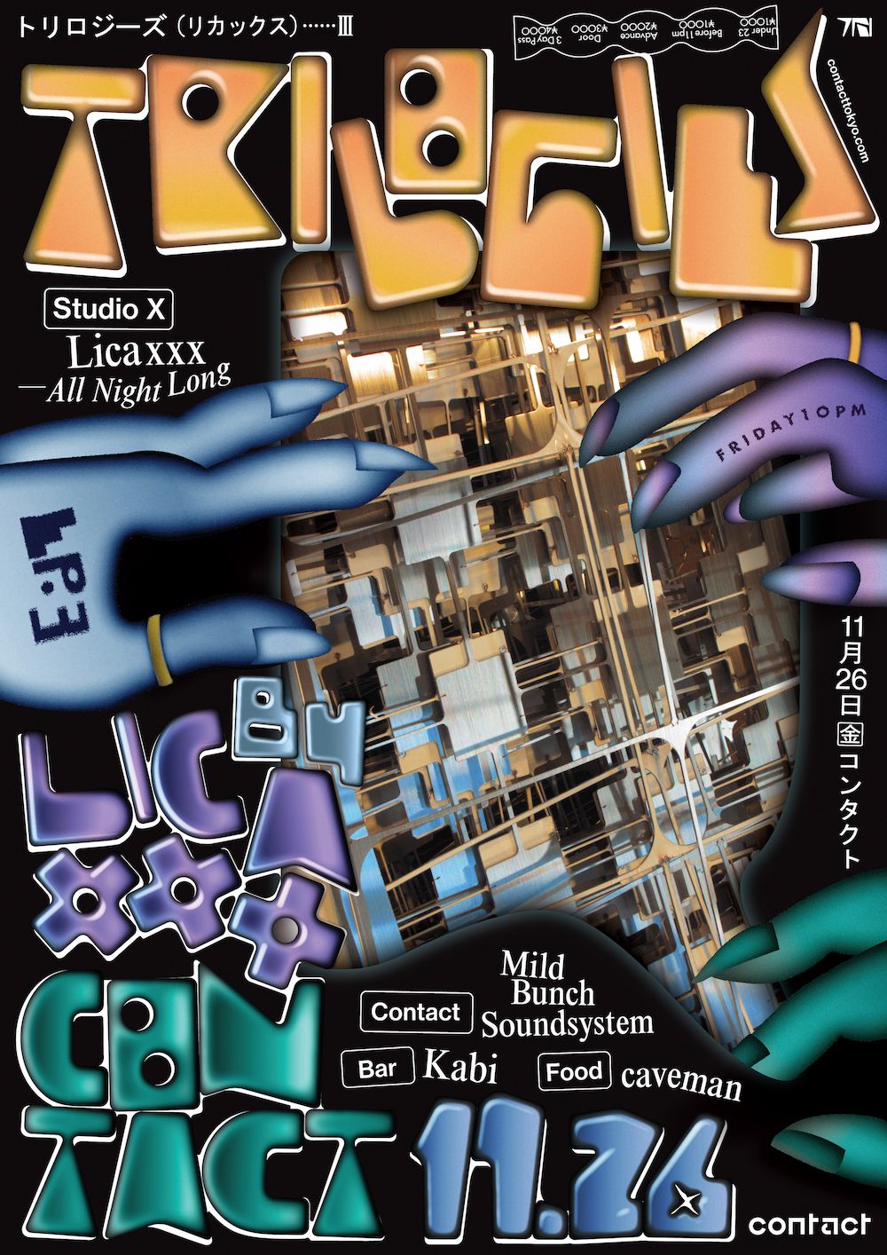 11月度最終回となるこの日はLicaxxxがオールナイトロングでの登場だ。前2回とは打って変わりStudio XをLicaxxx自身が1人で作り上げる。昨年キャリア10周年を迎えたLicaxxxは過去にBoiler Room、Fuji Rock、CIRCOLOCOなど国内外の代表的なイベントに出演し、クラブ公演ではPeggy Gou、Randomer、Mall Grab、Anthony Naples等の来日をサポート。NTS RadioやRinse Franceなど名門ラジオ番組にミックスを提供するなどDJとしてのキャリアを着実に積み重ねてきた。2019年からは配信プラットフォームTokyo Community Radioを主宰し、若き才能に焦点を当てつつ、世界中のローカルDJとの交流の場として運営。コロナ渦の状況下においてほぼ全てのクラブが営業を停止する中、配信上で音楽を鳴らし続け、新たなる表現の場を生み出すことにおいても大きな役割を果たした。活躍はDJにとどまらず、ファッションショーの音楽なども多数制作。Chika Kisadaのミラノコレクションや、dressedundressdの東京コレクションにて起用され、クラブカルチャーとそれ以外のコミュニティとの結節点としても、シーンに多大なる影響をもたらしている。そんな彼女のコアを形成するDJを余すことなく体感できるロングセットはエクスクルーシブな内容になること間違いない。