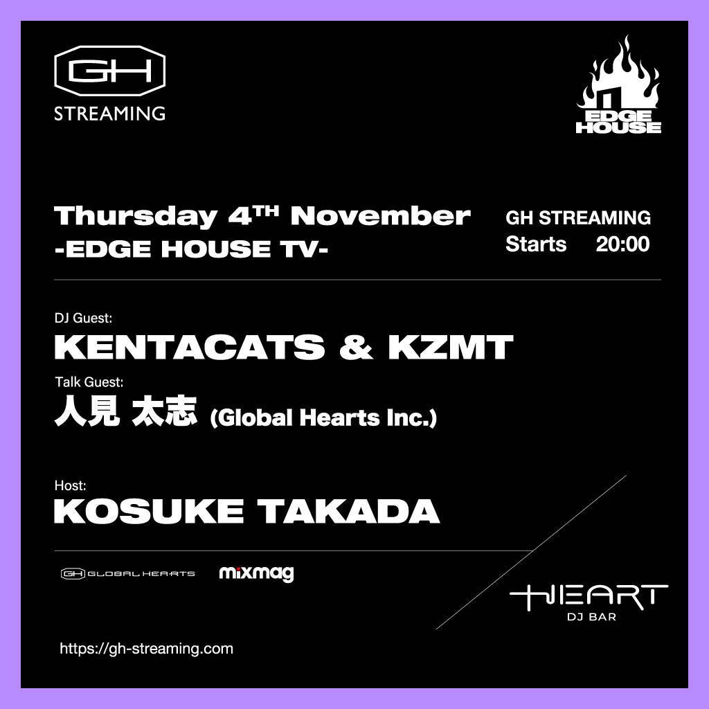 オーガナイザーKosuke Takadaが番組ホストを務め、EDGE HOUSEにゆかりのあるDJやアーティストたちから最新情報や制作秘話、さらにはプライベートまで掘り下げる。前半はトーク、後半はDJ MIXと、見応えのある60分です。