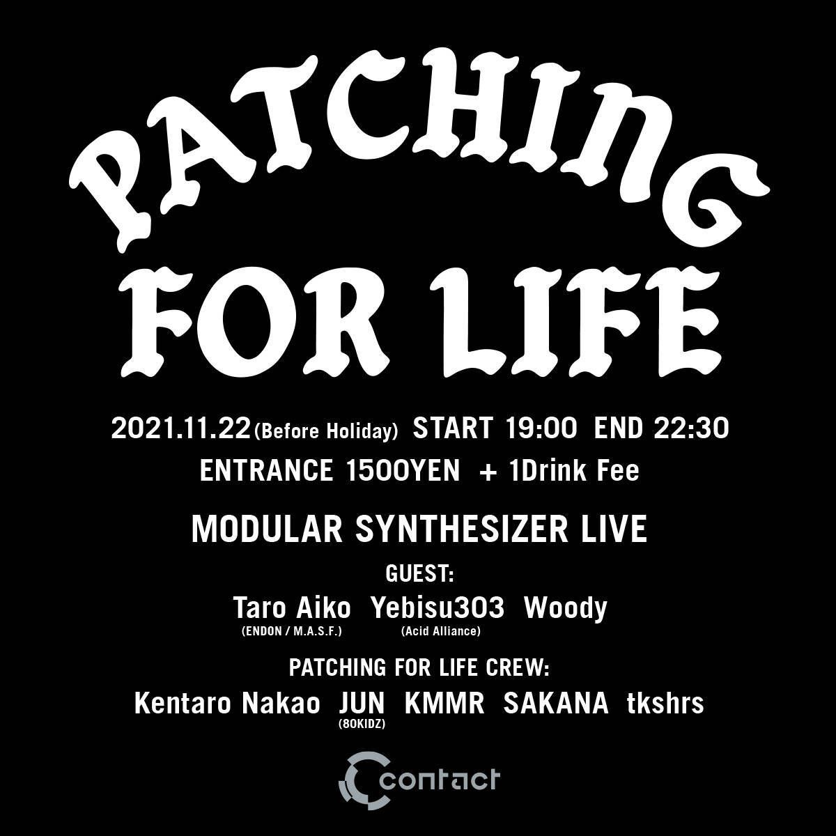 Kentaro Nakao、JUN (80KIDZ)、KMMR、SAKANA、tkshrsを中心に活動をしているモジュラーシンセプレイヤー集団Patching for lifeが主催する同名のイベント。