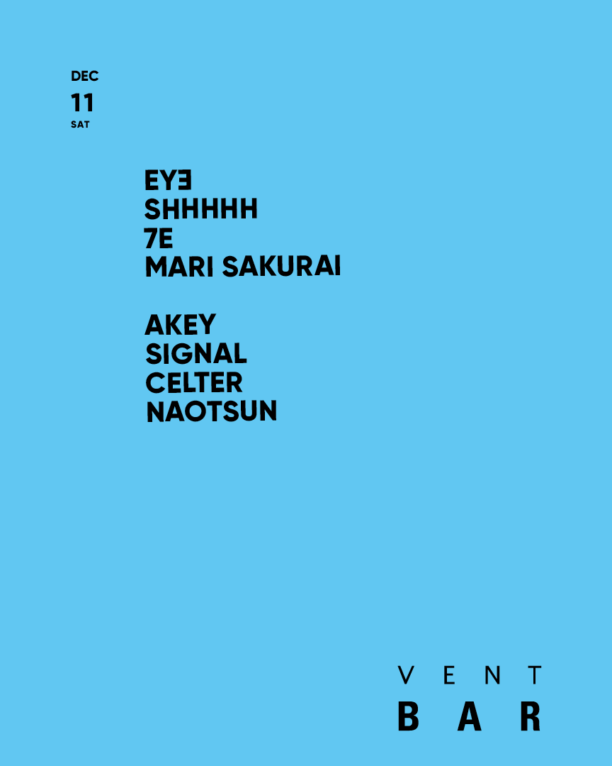 【 世界のアンダーグラウンドシーンへ影響を与え続けるEYƎが12月11日のVENT BARに登場! 】