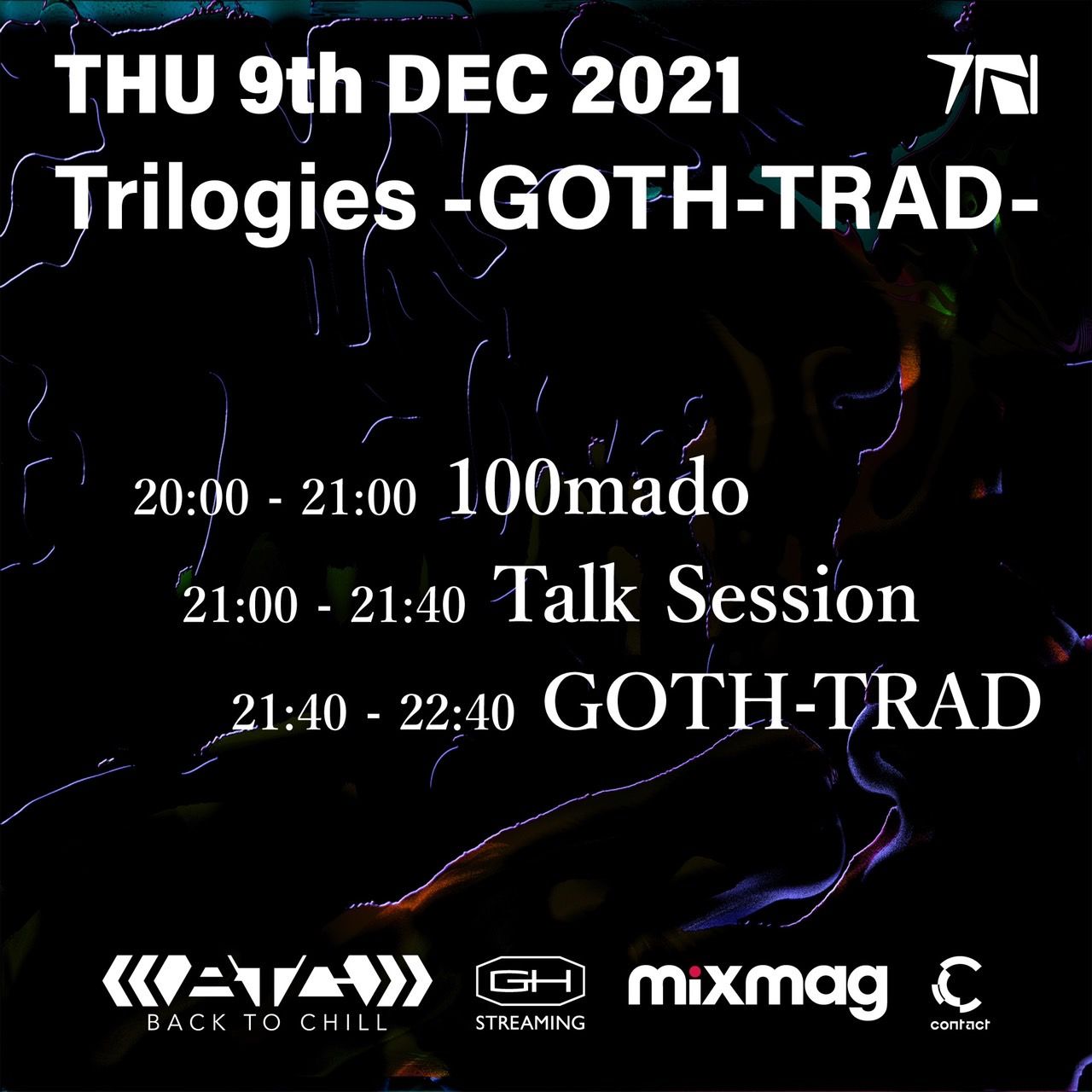 配信翌日からの"Trilogies -GOTH-TRAD-"を控え、GOTH-TRADと100madoによるDJセットと、彼らとYuki Kawasaki (Mixmag Japan)の貴重な対談を配信する。