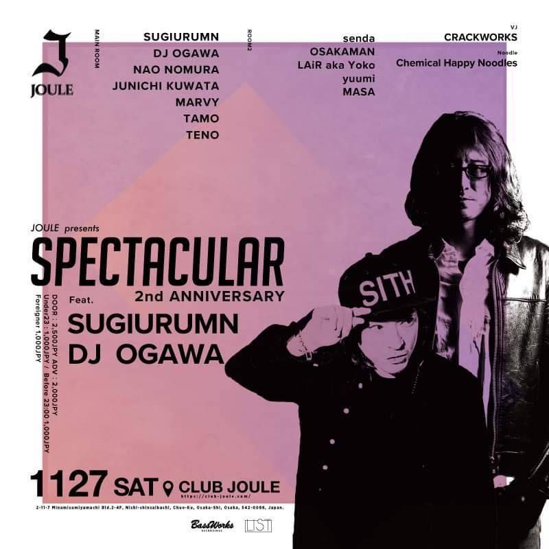 2019年11月にCHRISTIAN SMITHとNOIRを招きスタートしたSPECTACULAR、度重なる延期や中止を乗り越え2周年を迎えます。 MAIN ROOMにはBASS WORKS RECORDINGSを主宰し、7枚のオリジナルアルバムを発表し、シングルも世界各国のレーベルよりリリースするSUGIURUMN。名古屋を拠点に自らのサウンドを世界へと発信し続ける日本屈指のプロデューサー DJ OGAWA のWゲストを迎え開催します。