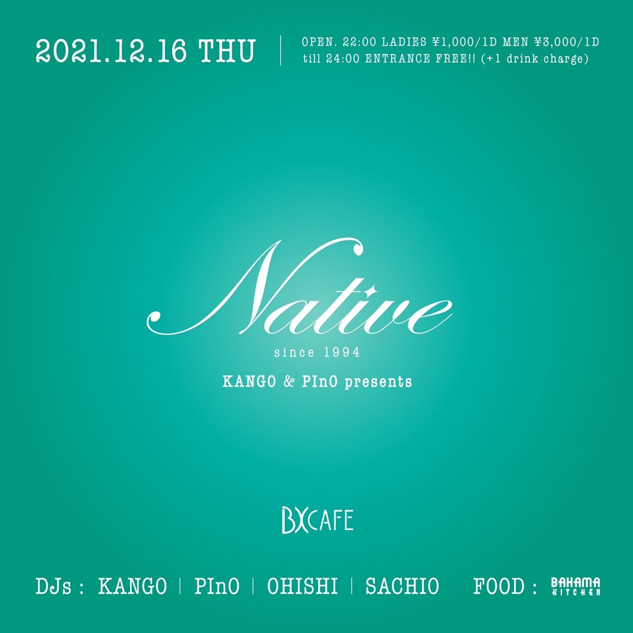 - LADIES ¥1,000/1d MEN ¥3,000/1d※ till 24:00 ENTRANCE FREE!! ( +1 drink charge))