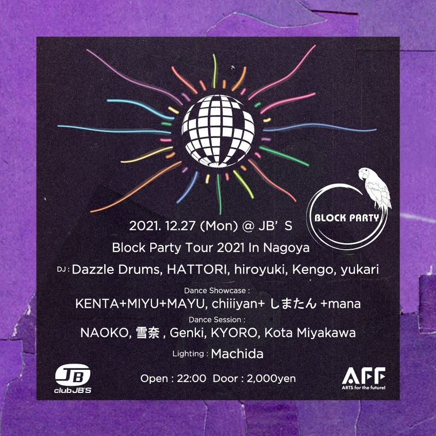東京青山のクラブ0 Zeroにて毎月行われているDazzle Drums主催によるサンデーアフタヌーンパーティーBlock Party初の全国ツアー。ありがたいことにDazzle Drumsが繋がってきた名古屋のシーンの人たちとパーティーします。PIGEON RECORDSはじめ名古屋のみならずハウスシーンに欠かせないHATTORI、近年ではThe People In Fogアルバム参加や積極的に作品をリリースするhiroyuki、トラックメイカーでもありダンスを軸に新しい波を作るyukari、そして名古屋のダンスシーンの皆さんと一緒に。大変な状況ですが、元気な方は少しでも寄ってみて下さい。感染対策にご協力お願い致します。