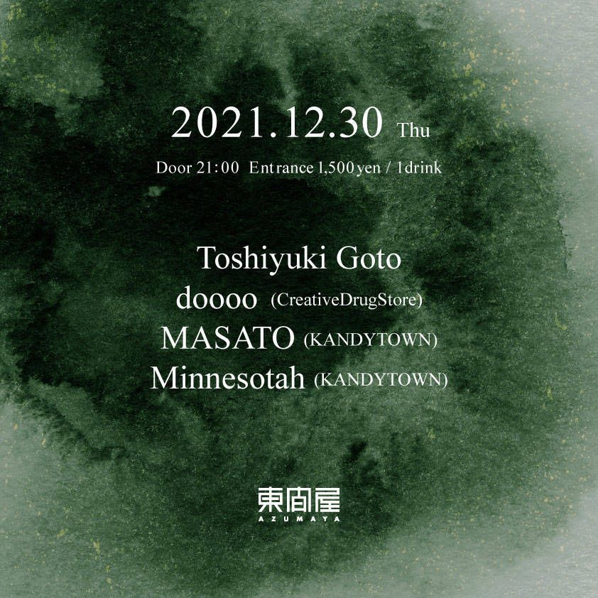 2021.12 30 DEC Azumaya -Thursday- HOUSE 0 Shares Facebook Twitter google Line DATE: 2021-12-30 THU OPEN: 21:00 VENUE: PRICE: Entrance 1,500yen / 1drink LINE UP: Toshiyuki Goto doooo (CreativeDrugStore) MASATO (KANDYTOWN) Minnesotah (KANDYTOWN)