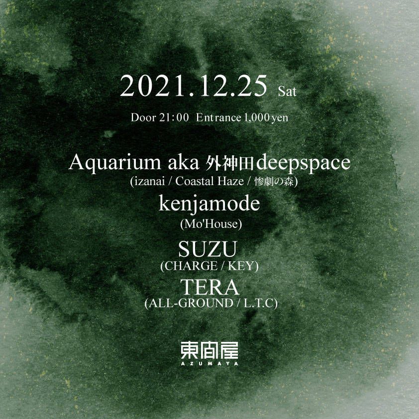 2021.12 25 DEC Azumaya -Saturday HOUSE TECHNO 0 Shares Facebook Twitter google Line DATE: 2021-12-25 SAT OPEN: 21:00 VENUE: PRICE: Entrance 1,000yen LINE UP: Aquarium aka 外神田deepspace (izanai / Coastal Haze / 惨劇の森) kenjamode (Mo'House) SUZU (CHARGE / KEY) TERA (ALL-GROUND / L.T.C)