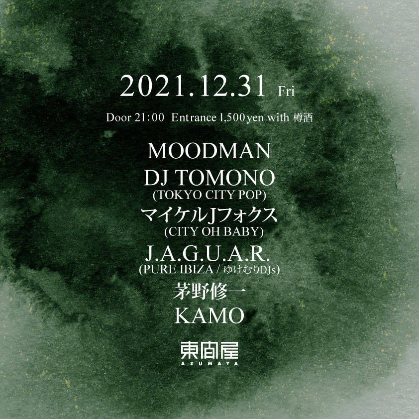 2021.12 31 DEC Azumaya -Friday- POP 0 Shares Facebook Twitter google Line DATE: 2021-12-31 FRI OPEN: 21:00 VENUE: PRICE: Entrance 1,500yen with 樽酒 LINE UP: MOODMAN DJ TOMONO (TOKYO CITY POP) マイケルJフォクス (CITY OH BABY) J.A.G.U.A.R. (PURE IBIZA / ゆけむりDJs) 茅野修一 KAMO