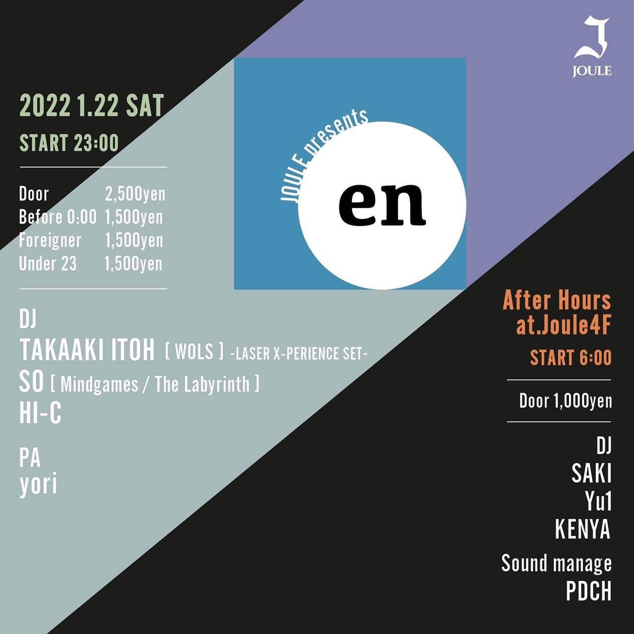 - Door : ¥2,500- Before 0:00 : ¥1,500- Foreigner : ¥1,500- Under23 : ¥1,500-