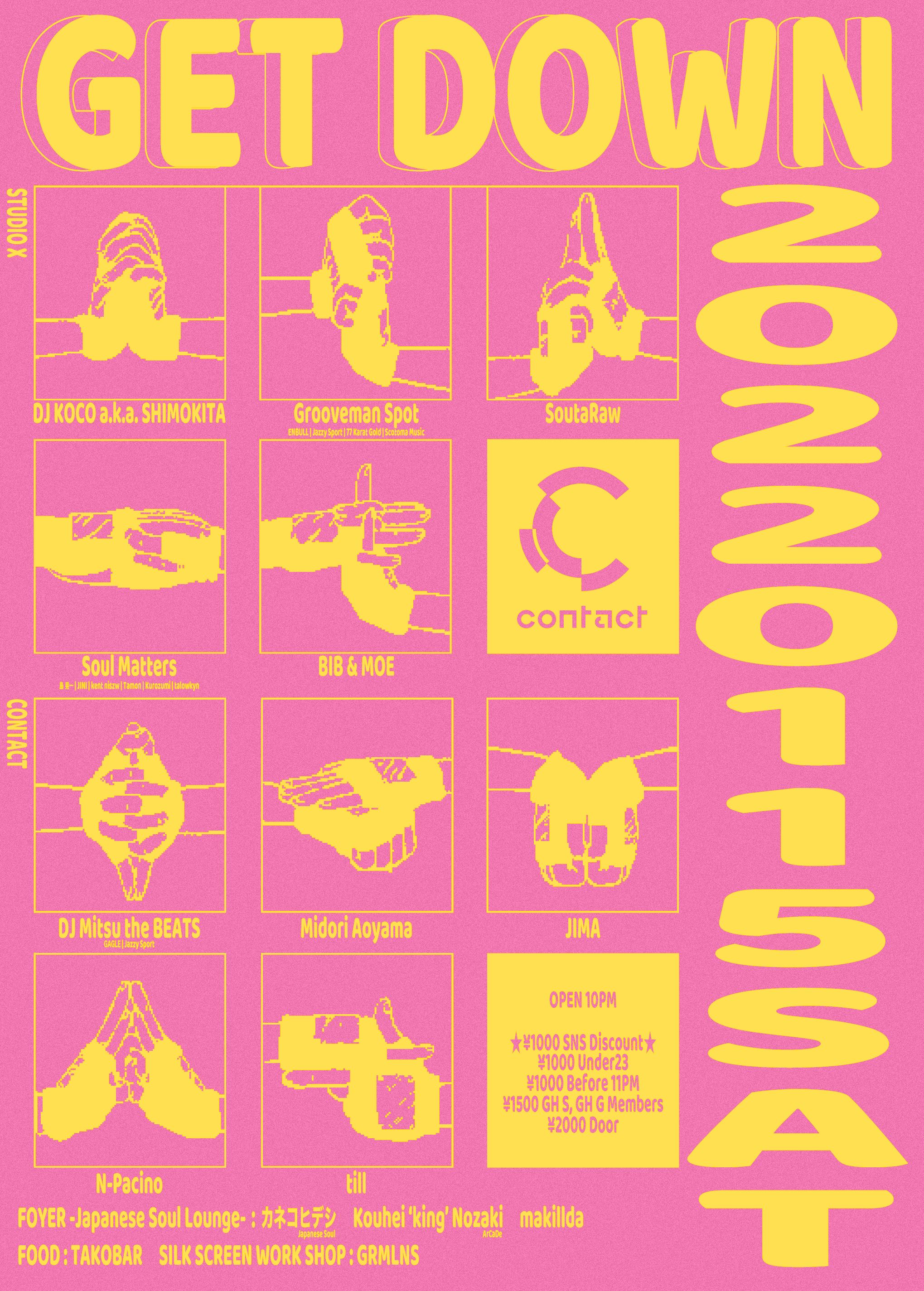 Studioには日本が世界に誇る7インチマスターDJ Koco a.k.a SHIMOKITAがGet Downに寄せた特別なセットを披露。仙台はJazzy Sport よりgrooveman Spotがクロスオーヴァーな選曲とともにSTUDIO Xへ初登場。そして、ディスコの達人として幅の広い層より支持を集めるSouta Raw、先日新メンバーが加わりあらゆるソウルへの探究心がやまないSoul Mattersが完全体の6名で音を重ね、TSUBAKI fmなどでの選曲が玄人を唸らせるBIB & M.O.Eの2人がバックトゥバックでオープニングを飾る。