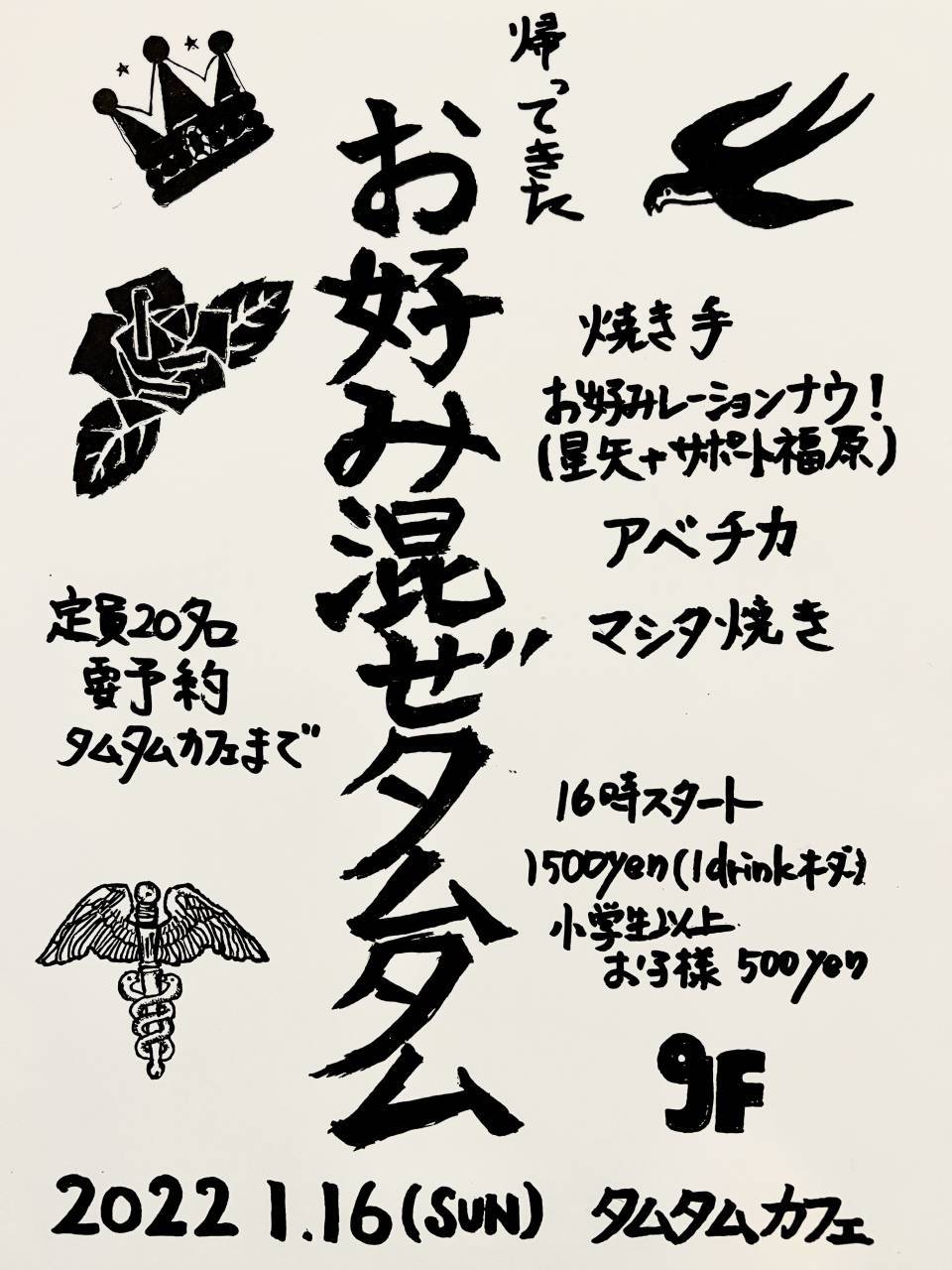 大人気の鉄板お好みパーティー『お好み混ぜタムタム』が完全予約制でようやく帰ってくる!!焼き方、具材、バランス…全てが焼き手それぞれの個性が光る✨人数限定なので、ご予約は必ずタムタムカフェまで連絡してください!地ソースだけでもあり過ぎて悩む事必須◎あなた好みのマリアージュを楽しんで!昂る気持ちをコテに込めて…。