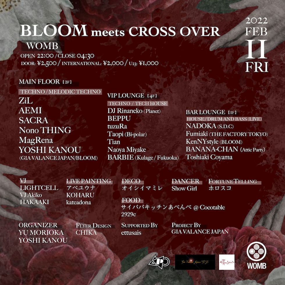 同じ時代、同じ時間、同じリズムを感じる事で世界中の誰もが繋がる事が出来るをコンセプトに「繋がる絆」そして「才能の開花」を目指し立ち上げたプロジェクトイベント BLOOM と、ジャンルに囚われずに様々な音楽と人々が交わる事がテーマの CROSS OVER。