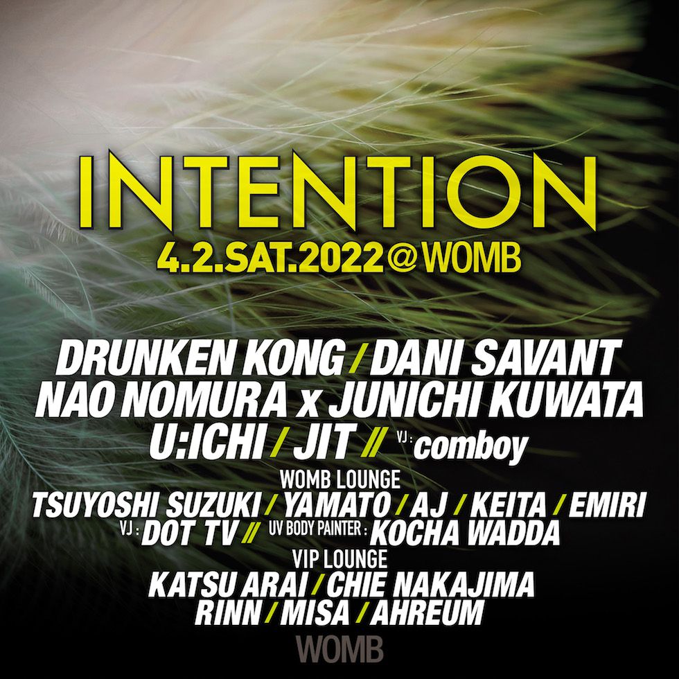 DRUNKEN KONG (TRONIC), DANI SAVANT (MIND OFF), NAO NOMURA x JUNICHI KUWATA, U:ICHI (WEAVES), JIT (INTENTION)