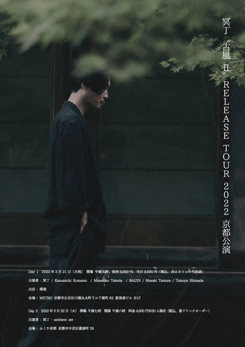 日本の古い文化をモチーフにした唯一無二のオリジナリティーで脚光を浴びるアーティスト・冥丁が最新作『古風 Ⅱ』のリリースツアーを全国6都市で開催!「LOST JAPANESE MOOD」(失われた日本のムード)をテーマに、アンビエントやミュージック・コンクレートを融合させながら、時とともに忘れ去られる日本の古い歴史の瞬間をノスタルジックな音の情景に再構築した3部作『怪談』『小町』『古風』で高い評価を得てきた冥丁が、最新作『古風 Ⅱ』(KITCHEN. LABEL)のリリースを記念した国内ツアーを前橋、京都、東京、豊田、和歌山、札幌の全国6都市で開催。京都では日本最古の老舗クラブ”METRO”にてビートセットを、町家を改装した趣のある空間”ふくや”にてアンビエントセットのLIVEの2Days公演となる。
