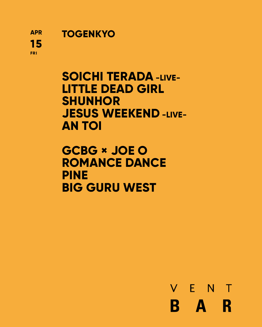 【 Rush HourとHuneeのフックアップにより世界で大ブレイクしたSoichi Teradaが4月15日のVENT BARに登場!! 】