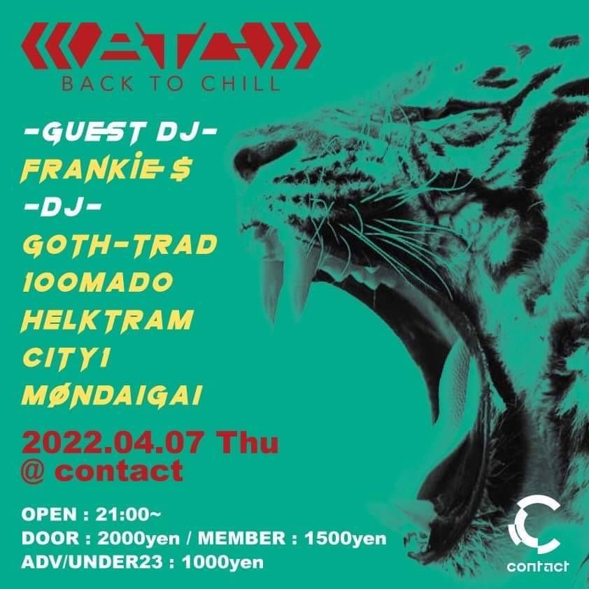 主宰GOTH-TRADがUKのダブステップ・シーンと繋がるきっかけとなった自身のタイトル「Back To Chill」を由来に、2006年に始動した同名のパーティは日本初のレギュラー・ダブステップ・パーティとして話題を呼び、国内のヘッズのみならず、海外のベース・ミュージック・ファンからも注目を集めている。今やダブステップ/ベースミュージック・パーティの最高峰かつ代名詞にもなっており、Contactでの開催もBack To Chillのサンクチュアリー・毎月第一木曜日に深夜の渋谷地下を大きく揺るがす。