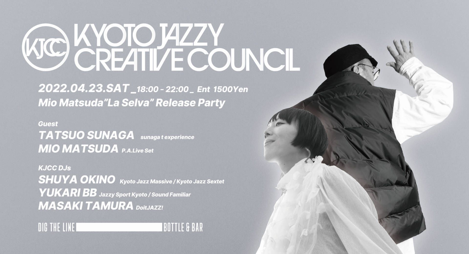 JAZZと京都をフィルターにして活動するクリエイティヴ・チーム”KJCC (Kyoto Jazzy Creative Council )”運営による2022年最初のパーティとなる今回は、世界同時開催のレコードの祭典の日RECORD STORE DAYの限定盤として12inch LP”La Selva”をリリースする”Mio Matsuda”がPA Liveを披露。そして、リリース元レーベル”DISC MINOR”オーナーであり、きっかけを作った張本人、ソロ・ユニット"Sunaga t experience"として数々の作品を世に送り出しているレコード番長”須永辰緒”氏が登場します。複合商業施設「新風館」1Fに位置する最先端ヨーロッパのクラフトビールと日本酒が楽しめる「DIG THE LINE BOTTLE & BAR」にて開催。