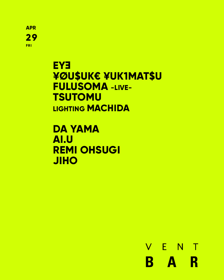 【 数十年に渡り世界へ影響を与え続ける ∈Y∋ が4月29日のVENT BARへ再び登場! 】