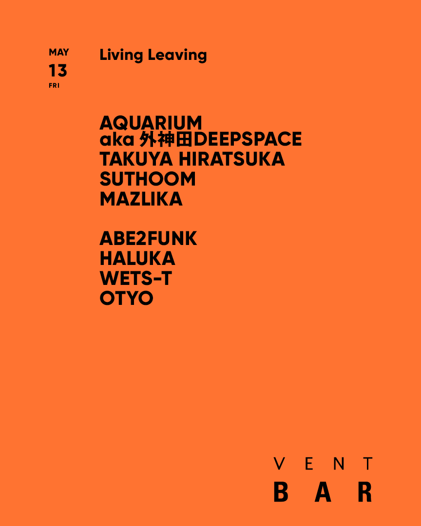 マンチェスターのオルタナティブな次世代ハウス・レーベル“NATURAL SCIENCES” や、デトロイトの“CLAVE HOUSE”など数々の気鋭のレーベルからのリリースや、Ko Umehara、Phonehead、BUSHMINDとの不定期開催のパーティ 惨劇の森 でも注目を集める Aquarium aka 外神田deepspace が、Joey AndersonやDJ Quの作品のリリースを手掛けてきたレーベルyygrecが主宰し、これまでも国内外の多彩なアーティストを招聘し幾度となくエッジの効いた空間を創り出してきたLiving Leavingに登場。