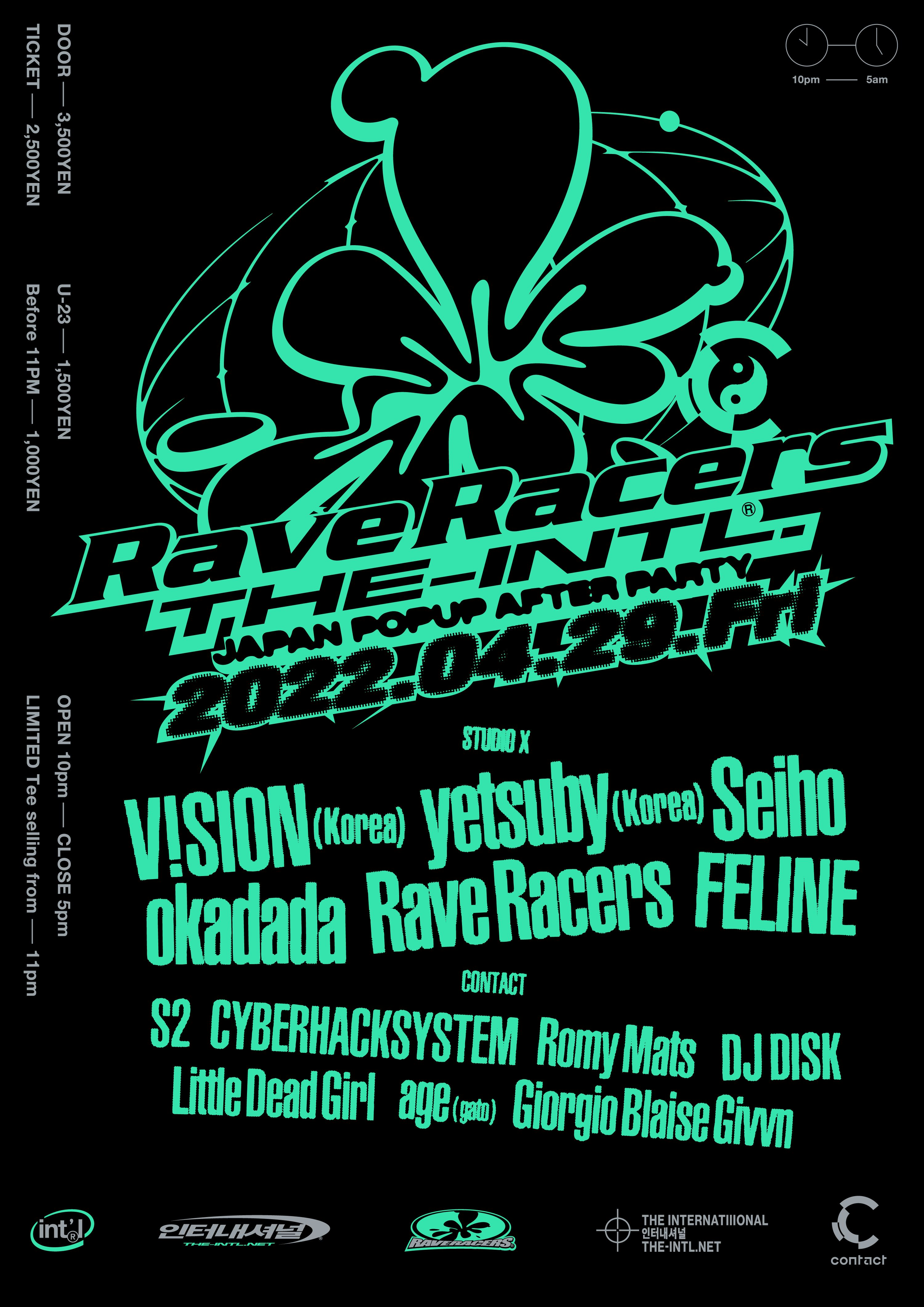 Rave Racersと韓国拠点のThe Internatiiionalが手がけるポップアップイベントのアフターイベントが開催される。