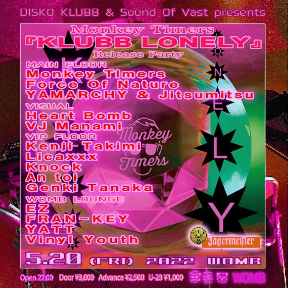 DISKO KLUBB & Sound Of Vast presents Monkey Timers『KLUBB LONELY』Release Party
