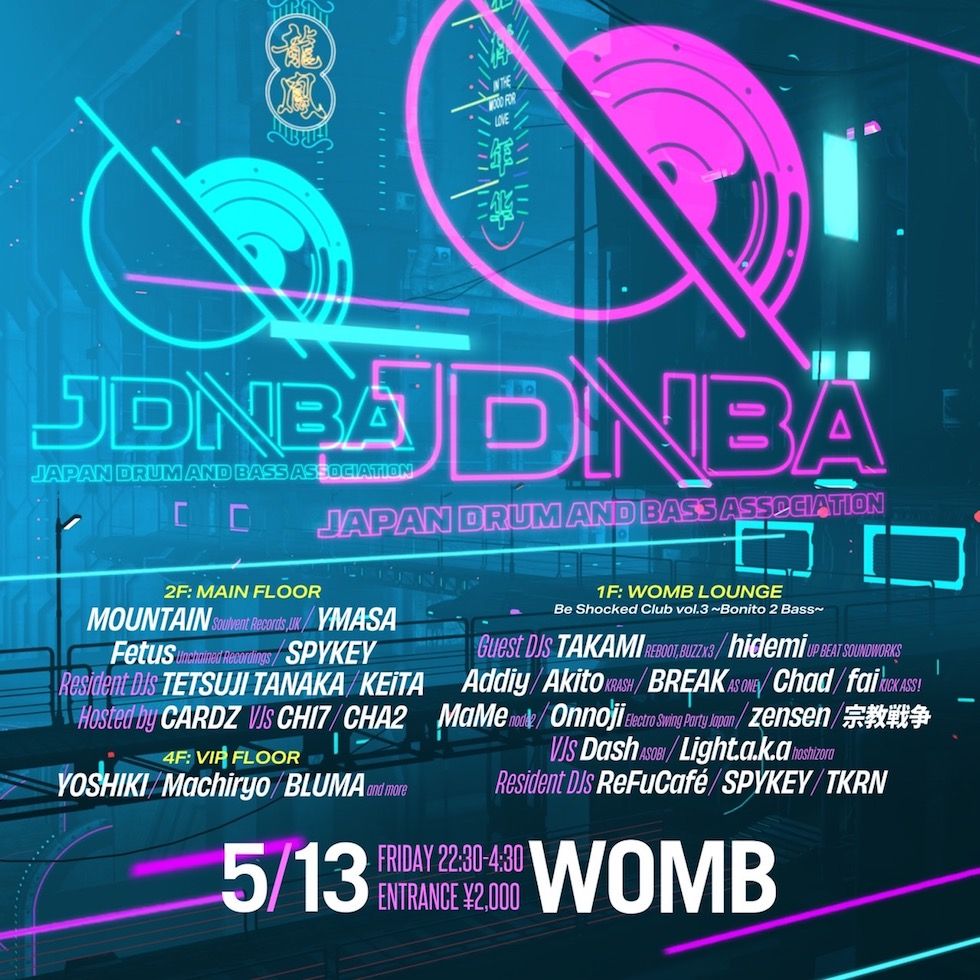 世代やクルーの枠を超えた多彩なラインナップで、新たな潮流を生み出している WOMB 発のドラムンベースパーティー JDNBA。