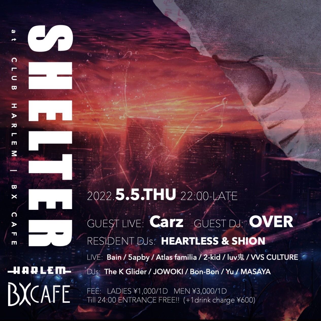 - LADIES ¥1,000/1d MEN ¥3,000/1d ※till 24:00 ENTRANCE FREE!! (+1 drink charge)