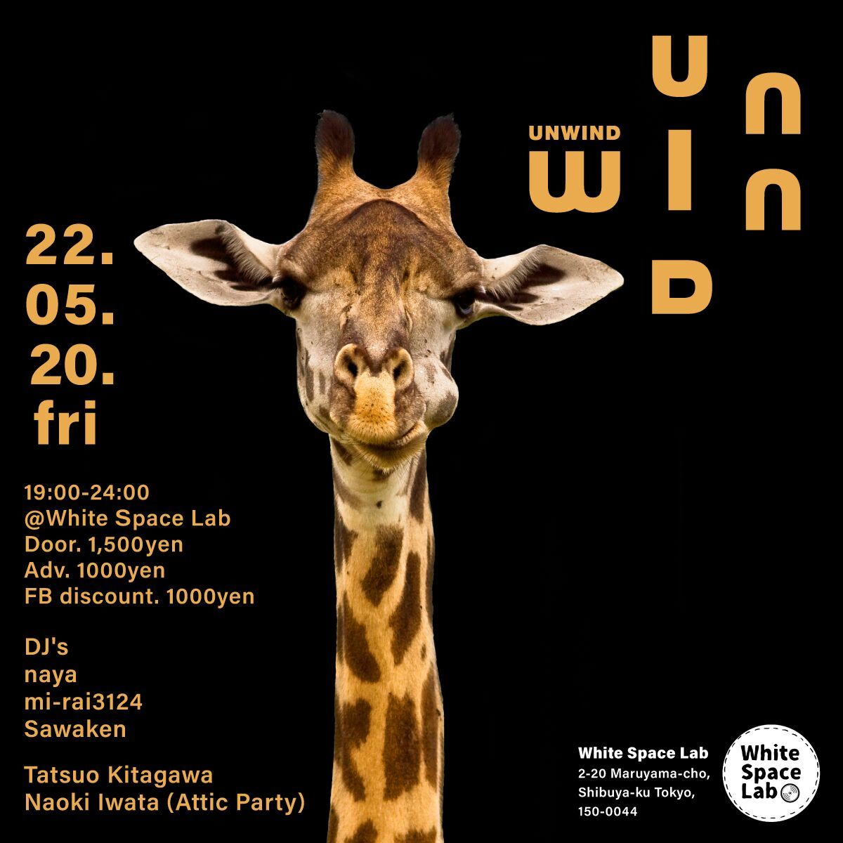 White Space Labでのディープハウスパーティ ”UNWIND” エレクトリックミュージックの表現としても常に進化し続けているディープハウス。新たなジャンルとしても確立しているOrganic house / Downtempoといった進化系ディープハウスは元より、レフトフィールドスタイルとして、新しく実験的なサウンドを心地良く体感できるディープハウスパーティ”UNWIND”